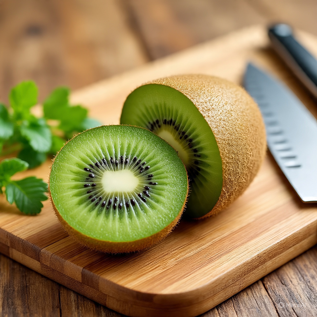 Kiwifruit is a small, nutrient-dense berry from woody vines (Actinidia species), characterized by fuzzy brown skin, bright green or golden flesh, and tiny black, edible seeds. Originating in China and famously grown in New Zealand, it has a sweet, tangy flavor often described as a blend of strawberry, banana, and citrus. It is highly nutritious, packed with Vitamin C, Vitamin K, fiber, and antioxidants.
